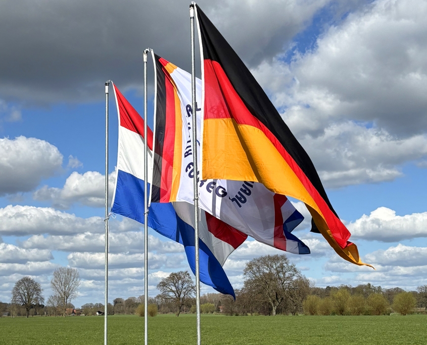Flagge des Grenslandmuseums beim Einzug der Teilnehmer des Freiheitsmarsches „Walk in Freedom“